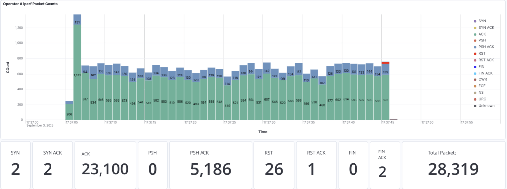 - metrics including RRC activation timers, IP acquisition timers, iperf metrics and TCP metrics